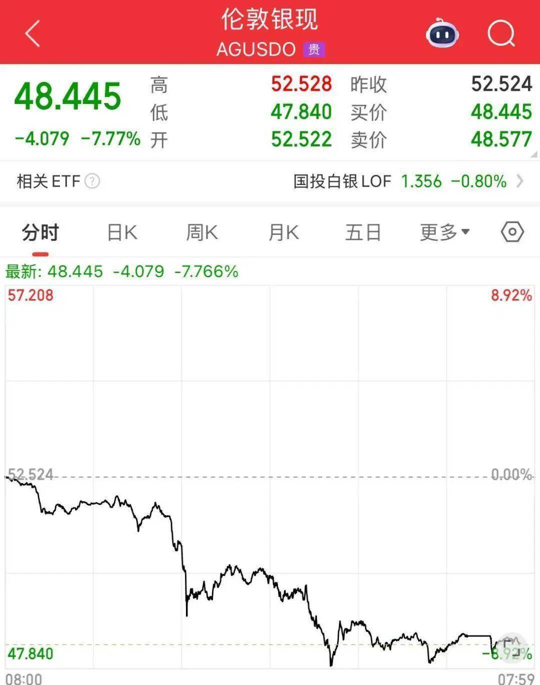 北京时间10月22日,COMEX黄金期货跌5.07%,报4138.5美元/盎司;现货黄金跌5.18%,报4130.41美元/盎司,盘中一度创自2013年4月以来的最大单日跌幅。COMEX白银期货跌6.27%,报48.16美元/盎司;现货白银跌7.16%,报48.705美元/盎司,盘中一度创下自2021年以来的最大跌幅。