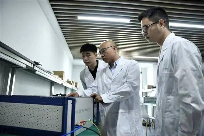智地感知联合创始人张强(中间)与科研人员调试研发设备。