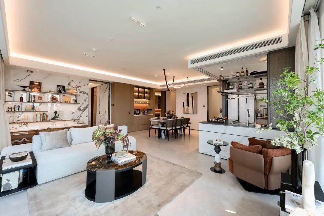 这样的设计,无走道浪费面积,最小卧室也有9㎡;客餐厨公区更是超50㎡,一般150㎡的房子都拿不出这样豪横尺度。