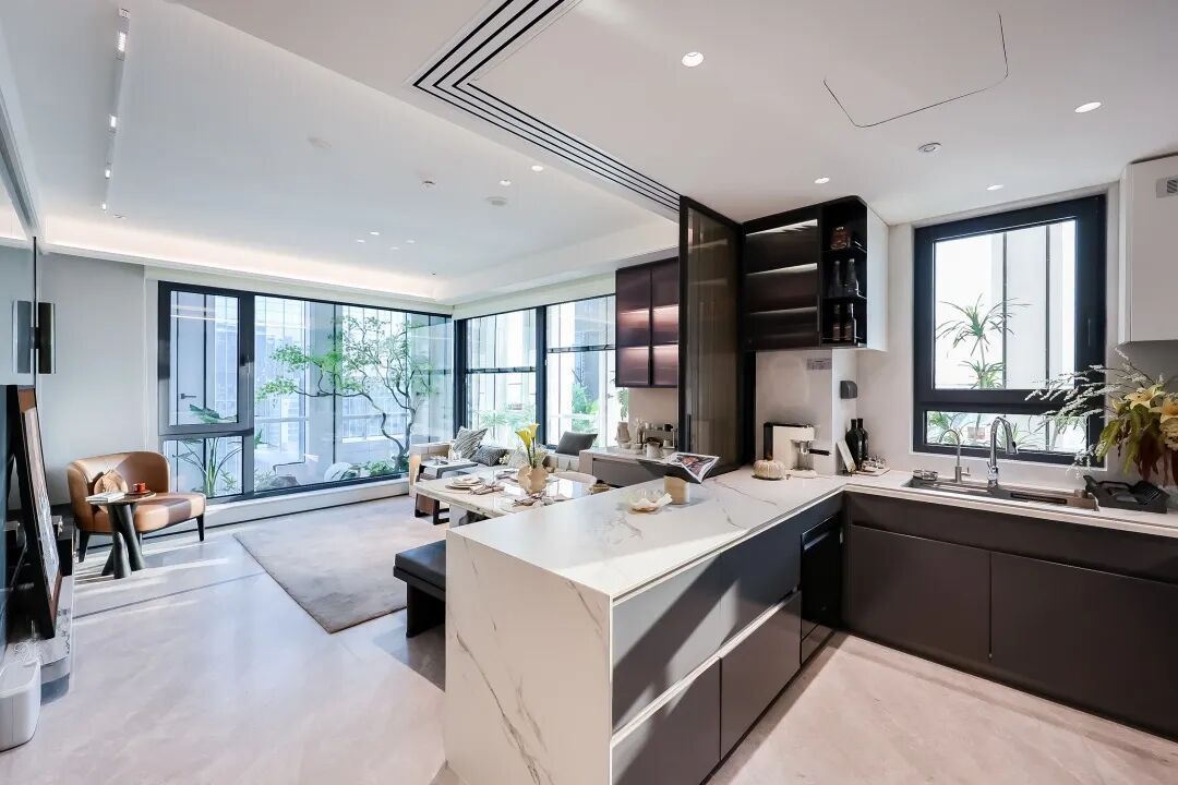 它将传统的南向次卧和客厅隔断打通,打造一个6.65米宽的横厅,搭配270°落地窗。