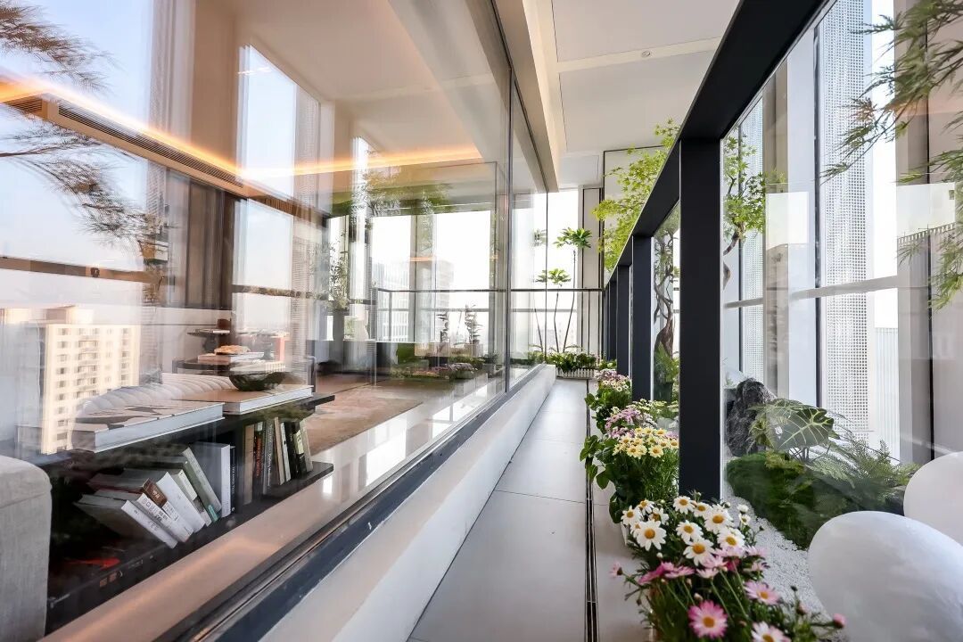 向内打破:利用花池作为介质,模糊室内外的界限,把窗外风景和业主的生活空间真正串联起来,让生活场景流动起来。